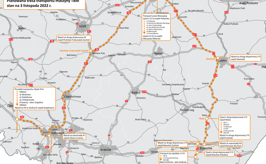 GDDKiA ostrzega, że zestaw będzie parkował na autostradzie, ponieważ gabaryty nie pozwalają na wjazd na parking. – Trasa przez Warszawę jest jedyną możliwą, ponieważ na A4 są dwa mosty które nie wytrzymałyby takiego obciążenia – wyjaśnia prezes stowarzyszenia przewoźników nienormatywnych OSPTN Łukasz Chwalczuk.