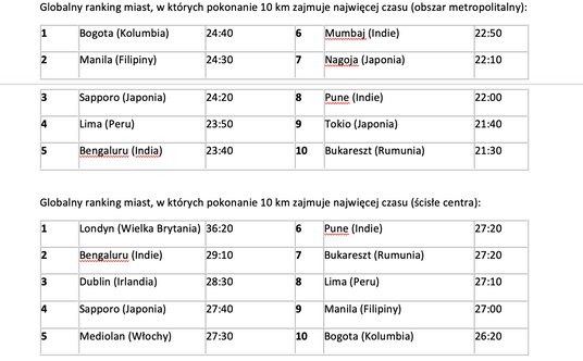 Więcej czasu na dojazd do pracy i powrót do domu zajmuje także kierowcom z Krakowa. Dystans 10 km pokonują średnio w 16 minut i 40 sekund. Łącznie krakowscy kierowcy spędzają za kółkiem 157 godzin, z czego 67 godzin to czas, który stracili z powodu korków.