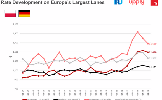 Podaż ładunków jest wyraźnie mniejsza, co odbija się na stawkach na rynku chwilowym. Spadły one w pierwszym kwartale br. do 132,5 punktów, o 7,5 proc. w stosunku do ostatniego kwartału 2022 roku. Jest to drugi z rzędu kwartał spadków i taka sytuacja miała ostatnio miejsce w drugim kwartale 2020 roku. W porównaniu rok do roku ceny są jednak o 8,9 proc. wyższe.