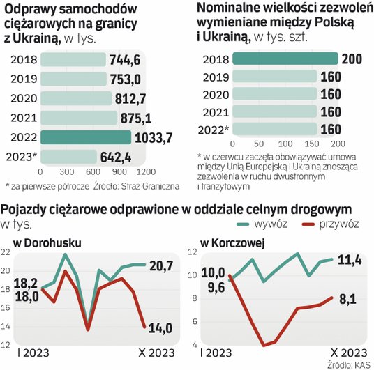 Jego samochody od 16 lat jeżdżą do Ukrainy, ale pracy dla nich jest coraz mniej. – W tym roku przez granicę przejechało 880 tys. samochodów ciężarowych, do końca roku będzie milion. Przed wojną każda ze stron miała po 160 tys. zezwoleń – tłumaczy Borkowski. Protestujący uważają, że połowa przewozów powinna być wykonywana przez polskie firmy. W poprzednim tygodniu na 27 tys. ciężarówek stojących w kolejce na wyjazd do Polski, tylko 1700 było polskich.