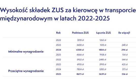 Rządowy projekt ustawy o minimalnym wynagrodzeniu został skrytykowany przez przewoźników. Przyjęty projekt ostatniej ustawy budżetowej zakłada podwyżkę prognozowanego przeciętnego wynagrodzenia o 849 zł, do 8 673 zł (aktualnie jest to kwota 7 824 zł). Właśnie od tej kwoty najczęściej odprowadzane są składki ZUS z wynagrodzenia kierowców w przewozach międzynarodowych.