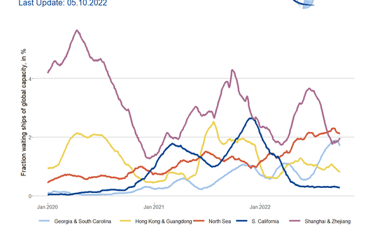 Instytut w Kilonii podlicza, że 12 proc. statków stoi na kotwicach, czekając na wpłynięcie do terminala. Największe zatłoczenie jest na Morzu Północnym, jednak w niemieckich portach maleje – na wejście do Hamburga i Bremerhaven czeka 12 statków, gdy miesiąc wcześniej było ich 19.