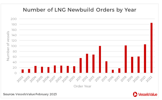 Mimo że zbiornikowce LNG stanowią zaledwie 1,45% całkowitej floty statków towarowych, ogólna wartość transakcji sprzedaży i zakupu LNG stanowiła blisko 12% wszystkich transakcji ładunkowych, które miały miejsce w 2022 r., w porównaniu z 3% w 2021 roku, podlicza specjalizująca się w wycenie statków firma VesselsValue.