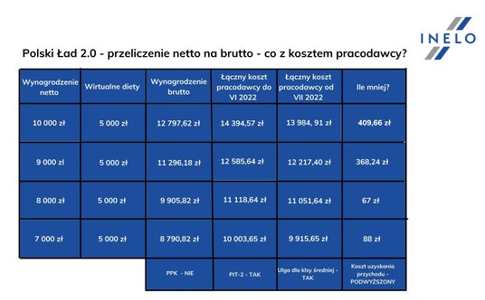 Jedną z najważniejszych zmian w Polskim Ładzie 2.0 jest obniżenie pierwszego progu podatkowego, z 17 proc. na 12 proc., który sięga aktualnie do kwoty 120 tys. złotych. Oznacza to, że każdy płatnik, mieszczący się w pierwszym progu podatkowym, zapłaci mniejszą zaliczkę na podatek do Urzędu Skarbowego. – Nowelizację ustawy związaną z Polskim Ładem najbardziej odczują przewoźnicy, zatrudniający kierowców z wynagrodzeniem netto, mieszczącym się w przedziale 9-10 tys. Wówczas, łączny koszt pracodawcy może zmniejszyć się nawet o 400 zł – zauważa ekspert ds. analiz i rozliczeń, Grupa Inelo Bartłomiej Zgudziak.