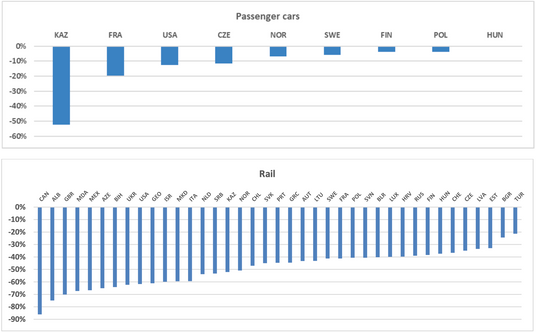 Przewoźnicy kolejowi wykonali w w 2020 roku mniej pracy, największy spadek zarejestrowały koleje na Łotwie (-50%), w Mołdawii (-39%), Estonii (-27%), Luksemburgu (-23%) i Holandii (-17%). W 12 krajach przewozy kolejowe były większe, a rekordowe przyrosty zanotowały koleje w Grecji (+32%), Chorwacji (+19%) i Bułgarii (+16%).