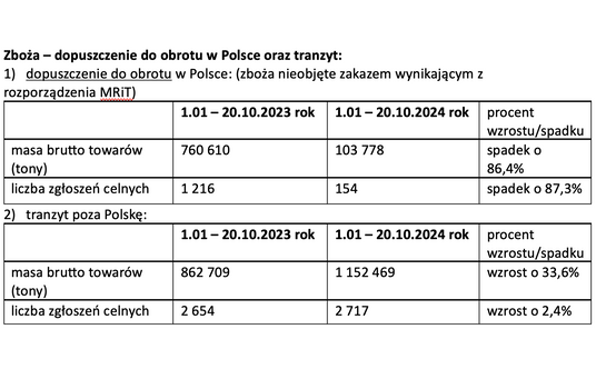 Przypomina, że międzynarodowy obrót towarowy jest „ściśle regulowane przez odpowiednie przepisy i na mocy tych przepisów podlegają też określonym kontrolom urzędowym”. Rozporządzenie Ministra Rozwoju i Technologii z 15 września 2023 r. w sprawie zakazu przywozu z Ukrainy produktów rolnych (poz. 1898.) wprowadziło bezterminowy zakaz importu na terytorium Polski (dopuszczenia do obrotu w Polsce) określonych produktów pochodzących z Ukrainy, takich jak m.in.: kukurydza, rzepak, pszenica, mąka pszenna, makuchy, nasiona słonecznika i inne. – Zakaz nie dotyczy natomiast tranzytu przez Polskę takich produktów – pod warunkiem, że tranzyt ma się zakończyć w portach morskich w: Gdańsku, Gdyni, Świnoujściu, Szczecinie, Kołobrzegu lub poza terytorium Polski. Od momentu wprowadzenia zakazu przywozu na terytorium Polski produktów rolnych (w tym zbóż) pochodzących z Ukrainy nie wystąpiły przypadki, aby towary objęte zakazem zostały dopuszczone do obrotu na terytorium kraju – zauważa rzecznik IAS w Lublinie.